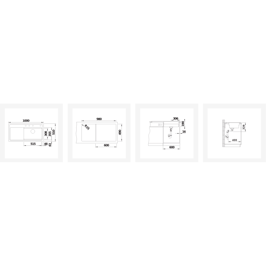 Sudoper Blanco Etagon XL6S antracit pribor s dalj. 528093